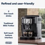 - SIMPLE TOUCH OPERATION: Automatic Coffee Machine Espresso and Cappuccino with Bean-to-cup quality and a soft touch control panel; brew two cups simultaneously with this De’Longhi machine