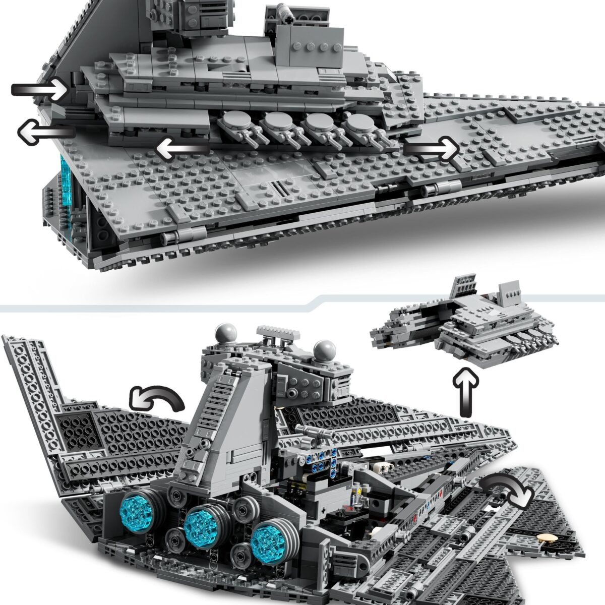 - Creative set – Interior features include the bridge, command room, break room, armoury, control panels, cargo box with Kyber Crystal and thermal detonators