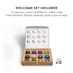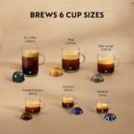 - VERSATILE COFFEE STYLES – From espressos, to iced or benefit-enhanced coffees, this Nespresso coffee machine brews 6 coffee cup sizes: Ristretto, espresso 40ml, double espresso 80ml, Gran Lungo cup 150ml, mug 230ml and Large mug 355ml, Includes complimentary welcome set of 12 pods