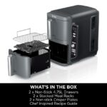 • COOK ON 4 LEVELS AT THE SAME TIME: Includes 2 x drawers AND 2x meal racks giving you 4 levels, so you can cook double the food. Rear fans ensure food is evenly cooked and crisped on all levels.