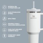 - ADVANCED LID CONSTRUCTION: Whether you prefer small sips or maximum thirst quenching, Stanley has developed an advanced FlowState lid, featuring a rotating cover with three positions: a straw opening designed to resist splashes with a seal that holds the reusable straw in place, a drink opening, and a full-cover top for added leak resistance. We’ve also included an ergonomic, comfort-grip handle, so you can easily carry your ice-cold water to work, meetings, the gym or trips out of town.